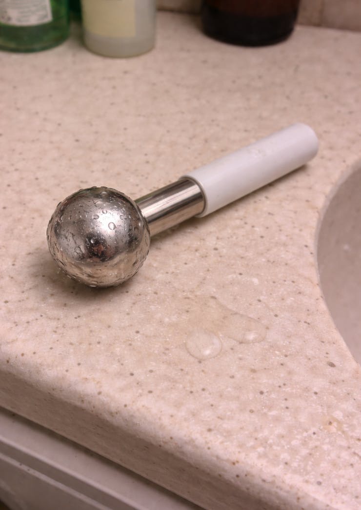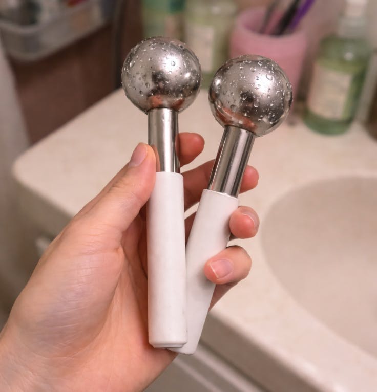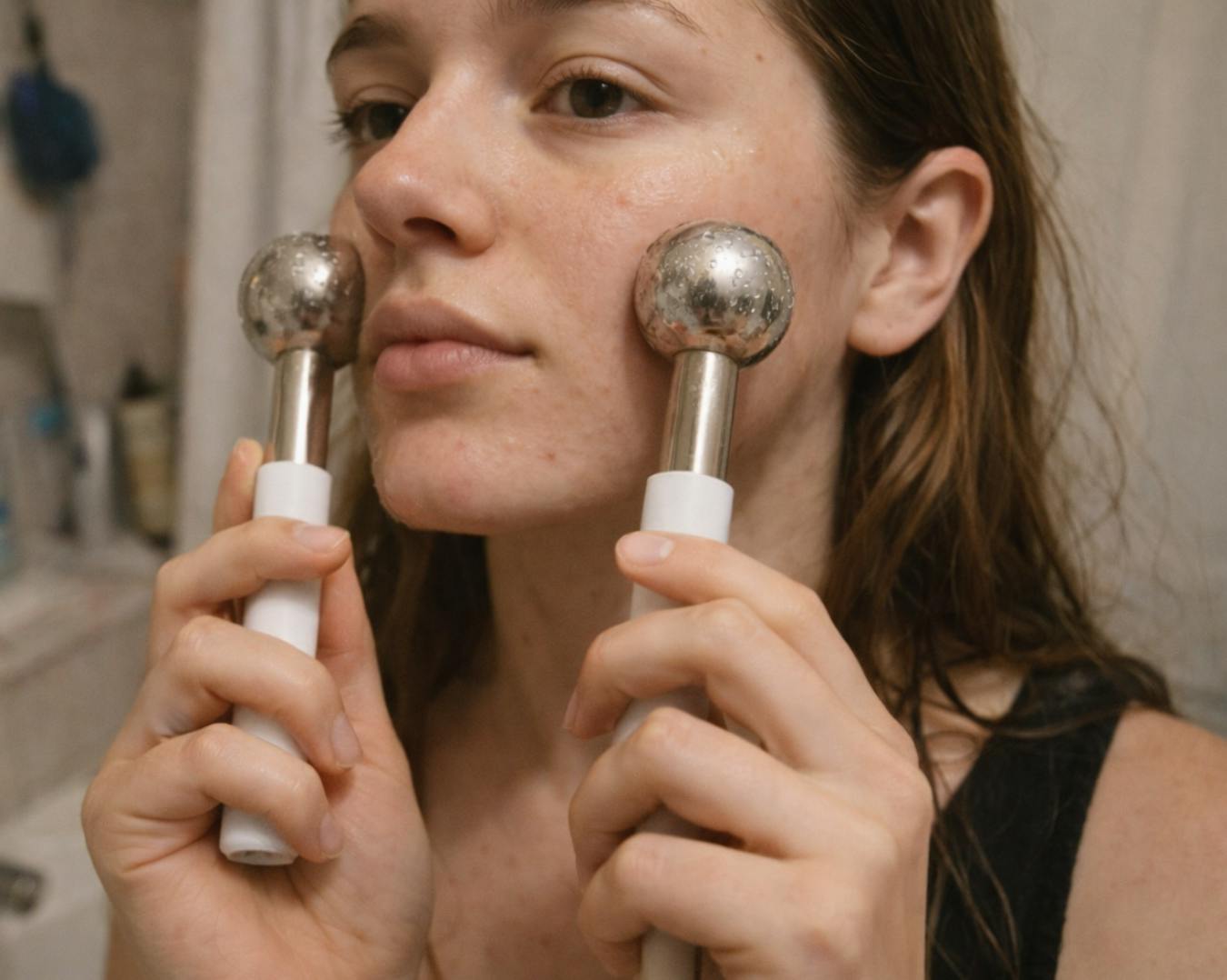 Step 1 (The Glide) Apply your favorite facial oil or serum to create a smooth, frictionless base. This ensures the CryoSculpt glides without pulling delicate skin while helping your skincare absorb deeper.